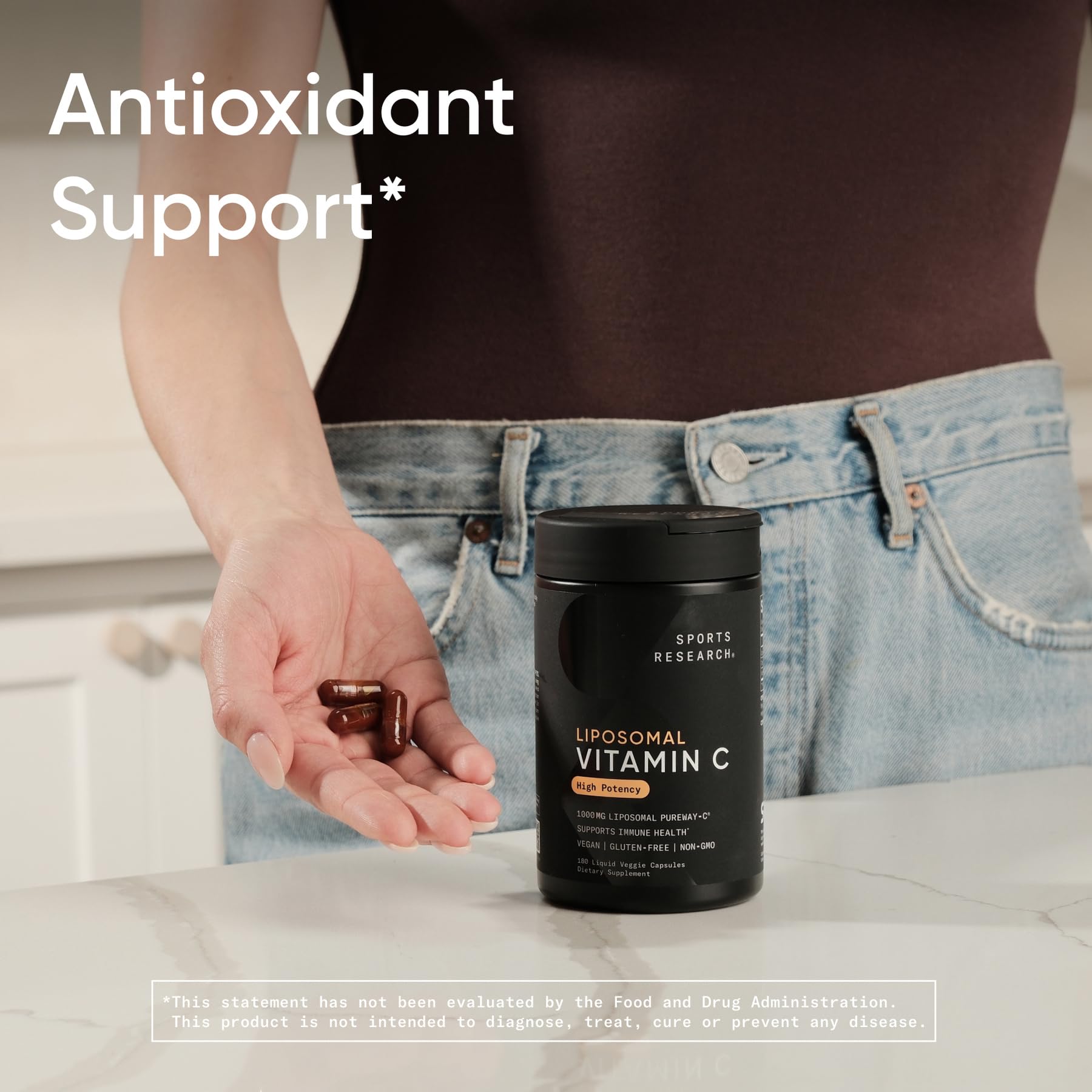 Sports Research® High Potency Liposomal Vitamin C Supplement 1000 mg – Certified Vegan, Non-GMO, Gluten Free | Antioxidant & Immune Support | Ascorbic Acid Vitamin C | 180 Liquid Veggie Capsules