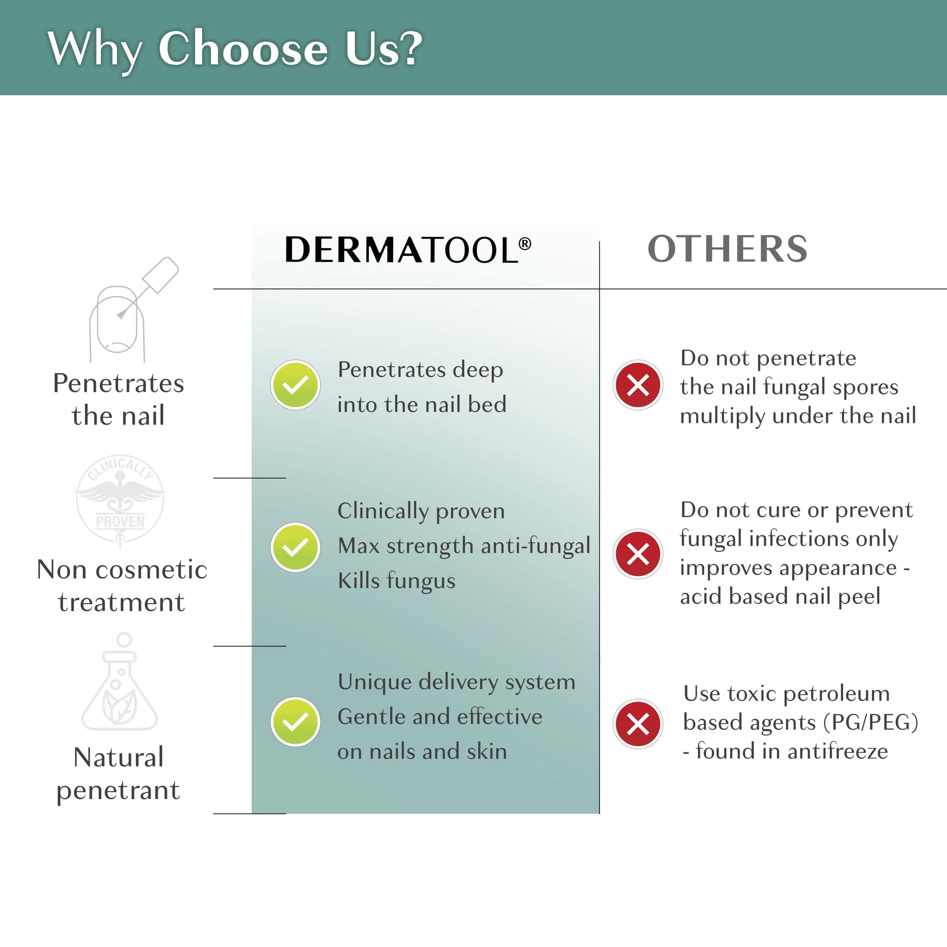 Restaura la salud de tus uñas con un tratamiento clínicamente probado que ataca los hongos desde su origen con nuestro exclusivo sistema de administración de fácil absorción. Tratamiento patentado y eficaz con tolnaftato para hongos en las uñas de los pies, fórmula extra fuerte de acción rápida. Evita que los hongos se propaguen.